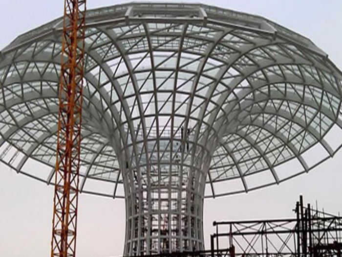 二、球形网架结构因其结构新颖,受力合理,自重轻、用钢量低等优点。如大型体育场馆球形天水螺栓球网架、公共场馆球形网架、电厂天水螺栓球网架、水泥工业球形网架、仓储物流球形网架、天水干煤棚工业球形网架、天水收费站天水加油站球形网架、展览中心、影剧院、商场、航站楼、候车厅、工厂天水车间、仓库、电视塔等球形螺栓球节点网架。国内球形网架结构主要分为:天水焊接球节点网架及螺栓球节点网架两种。螺栓球节点网架其构件工厂内加工量较大,现场安装便捷,适用于现场工期紧,天水施工条件、用电量受制约,网架形状复杂、天水杆件定位困难的异形结构。螺栓球节点球形网架系统基本由天水杆件、螺栓球、支撑支座等组成。按照节点形式可分为交叉天水桁架体系、四角锥体系、三角锥体系等。支撑方式多为固定支座支撑。对于大面积、大跨度及有特殊受力或伸缩要求的网架结构可采用橡胶支座、滑移支座、球铰支座等支撑形式,以满足结构自身的受力稳定、均衡,便于内力释放等设计要求。